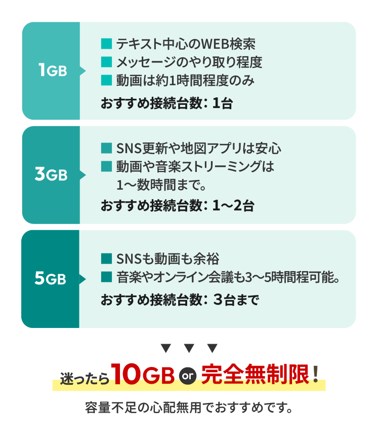 1日10GBまたは月間300GB以上の過度な通信利用が認められた場合、混雑回避のため通信速度が制限される可能性がございます。